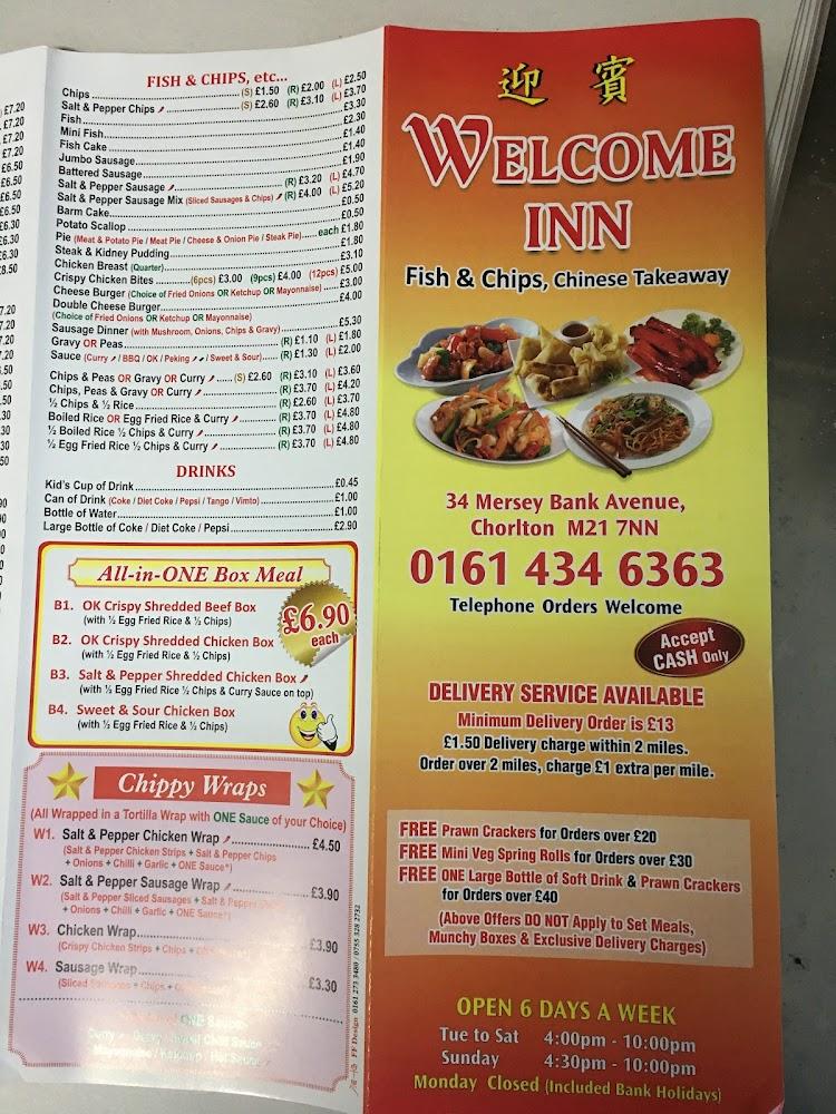 Welcome Inn is nestled in the heart of Chorlton-cum-Hardy at 34 Merseybank Ave, Manchester. This area is known for its vibrant community and diverse culinary offerings, making it the perfect location for a takeaway that excels in both fish & chips and Chinese cuisine. Established with a vision to serve the neighborhood, the Welcome Inn has built a reputation for serving consistently good food at affordable prices. The takeaway's accessibility features include a wheelchair-accessible entrance and ample parking, ensuring that everyone can enjoy their meal without hassle. Open daily, this venue has become a staple for locals looking for comforting food after a long day. With a casual ambiance, it's family-friendly, making it an ideal dining choice for a night out or a quick family meal. Plus, the option for no-contact delivery keeps safety in mind. It's a true local treasure worth visiting!